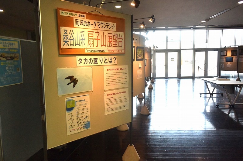 羊です。今日は午前中、岡崎市図書館交流プラザりぶらで行われている西三河野鳥の会主催のタカの渡り企画展へ行ってきました。すでにこのブログでも紹介している扇子山展望台でのタカの渡り観察の様子、自然環境に恵まれた扇子山とタカ類をはじめとする観察された野鳥の魅力を、会員の写真、長年に渡る観察記録などを基に紹介しています。16日(火)〈但し10日は休館日〉まで行われていますので、機会があれば出かけてみてください。9月から10月は渡り観察のベストシーズンです。体力維持も兼ね、今年は扇子山にもできる限り通ってみようかな。